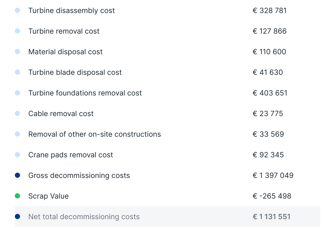 Find the main drivers of costs for decommissioning your project and what the phases will cosist of, depending on your scenario configuration.